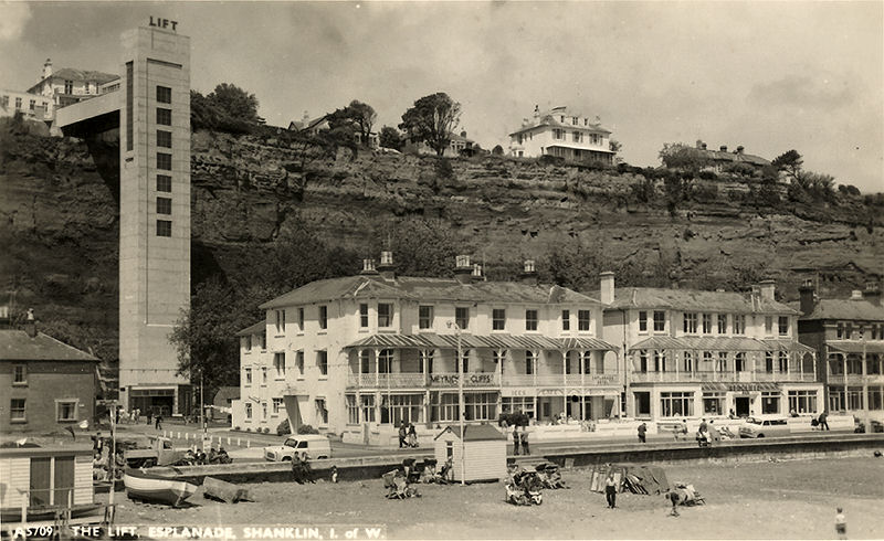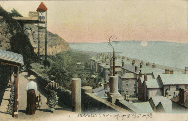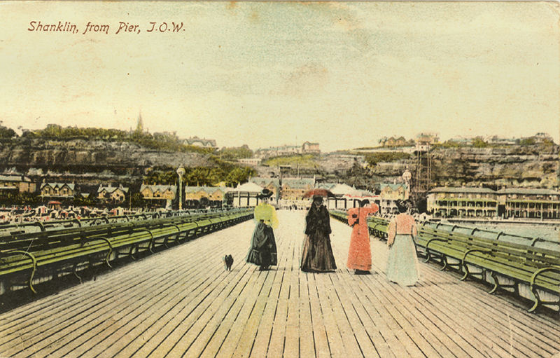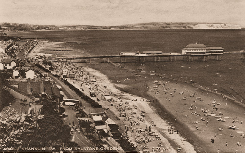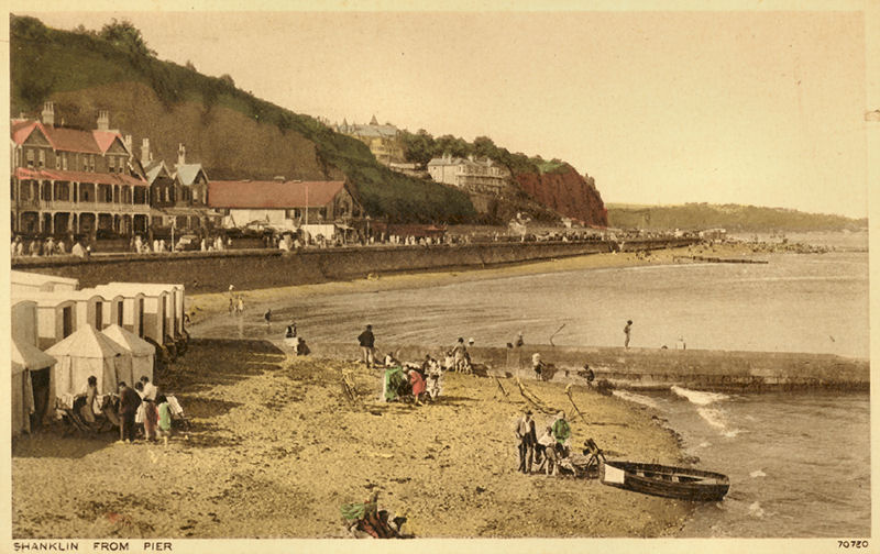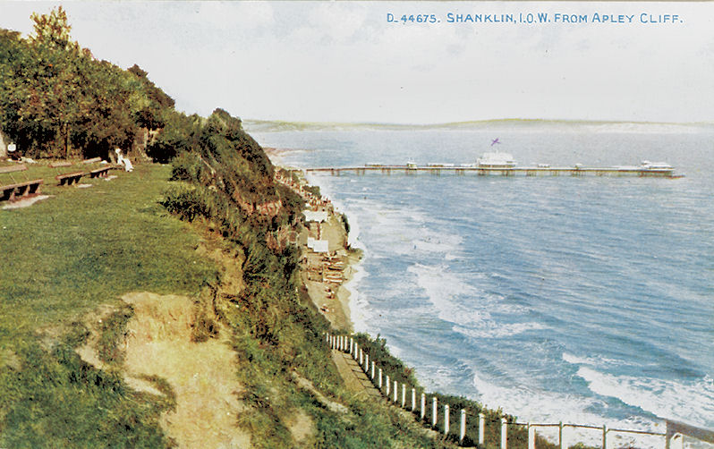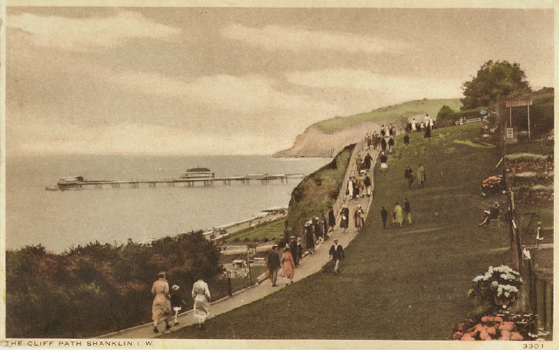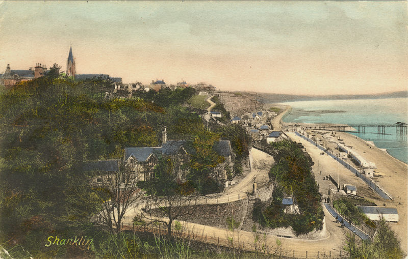 Old postcards are sometimes poorly produced and grainy, I've done my best to scan them. Please click thumbnails for full size picture. Dates are from the card or my estimate (where possible). The manufacturer of the card is shown in brackets (where available). 'The Esplanade is an undercliff promenade and roadway, almost level with the sea, and more than half a mile long. From it extends the Pier (toll 2d., 12 tickets Is. 6d. Season tickets at reduced rates). The Pier Casino is used daily by a concert party during the summer. On Sundays special concerts are organized. At the end of the pier is the Dance Pavilion. As at Sandown, the sands are all that could be wished, and slope so gradually that bathing is perfectly safe, while the rarely ruffled bay is ideal for boating. At the northern end of the Esplanade are very popular public bowling greens, putting greens, and hard tennis courts.' The greater part of the town is built upon the cliff at an elevation of from a hundred to a hundred and fifty feet above the sea. The cliff is a sheer perpendicular wall. At the north and south extremities of the town there are slopes, as easy as can be made, leading down to the Esplanade; but from the pretty Keats Green (a “thing of beauty and a joy for ever,” as a quotation from Endymion rightly reminds us) a zigzag flight of steps must be descended, or use made of the hydraulic Lift (1d. down; 2d. up). Keats made Shanklin his place of residence in the early part of 1819, and here he wrote the play of Otho the Great and the fine poem of Lamia. The Green is one of the most frequented spots in Shanklin. It is well provided with seats and commands entrancing views of the Bay. Ward Lock Red Guide from the 1920's Freshwater | Totland | Alum Bay and the Needles | Yarmouth | Shalfleet | Newtown | Calbourne | Carisbrooke Castle | Newport and Carisbrooke | Cowes and Gurnard | Osborne House | Wootton & Fishbourne | Quarr & Binstead | Ryde | Seaview | Bembridge | Brading | Sandown | Shanklin | Godshill | Arreton Valley | Ventnor | St Lawrence and the Undercliff | St Catherine's Lighthouse's | Niton | Blackgang Chine | Blackgang and Chale | Brighstone and Shorwell | Mottistone to Compton 10 December 2008 |